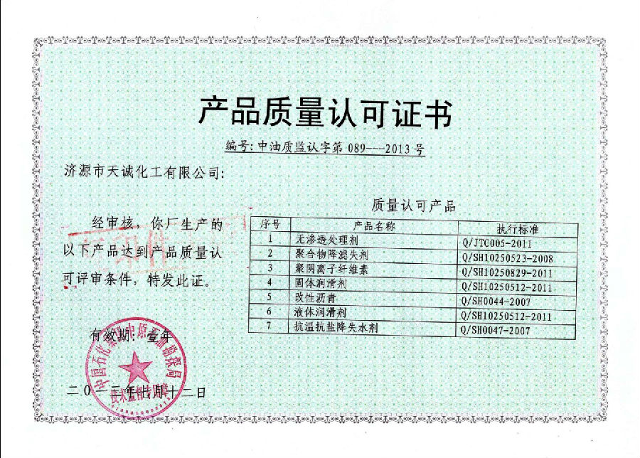 中石化質(zhì)量認可證