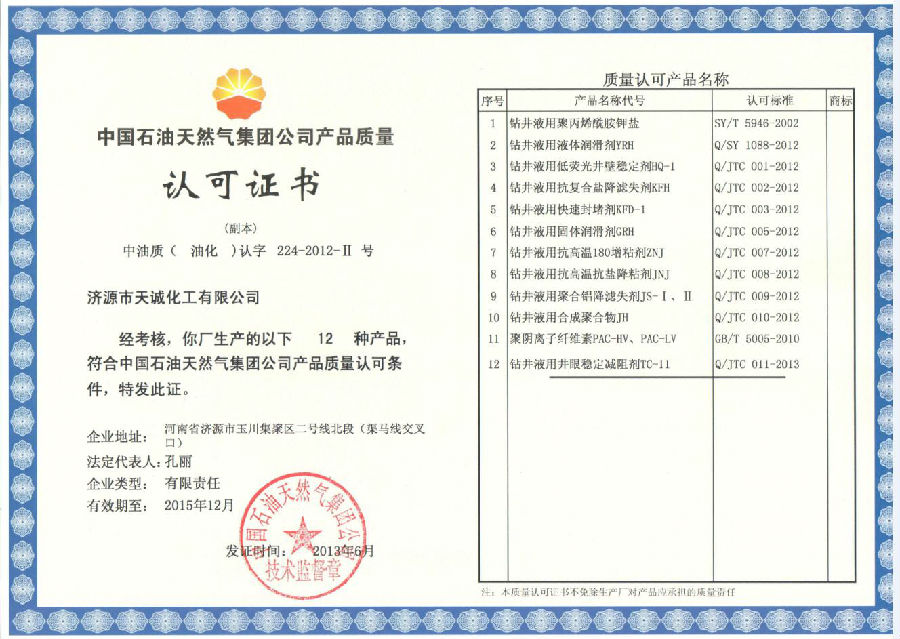 中石油質(zhì)量認(rèn)可證